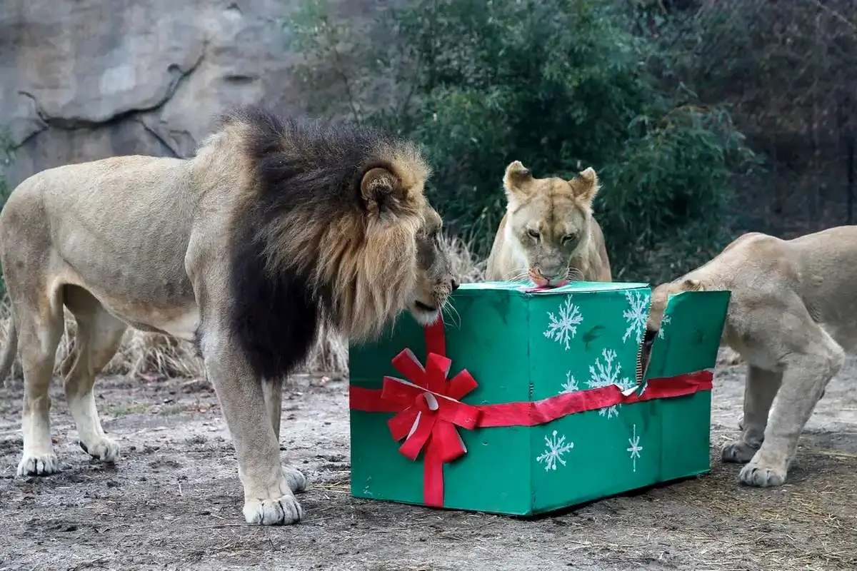 شیرها، فیلها، ماکاکها و پنگوئنها جشن کریسمس زودهنگام را در یک باغوحش در جنوب انگلستان تجربه کردند. مراقبان این باغوحش خوراکیها و تزئینات ویژهای فراهم کردند که هدف آن تحریک حسها و رفتارهای طبیعی حیوانات بود.